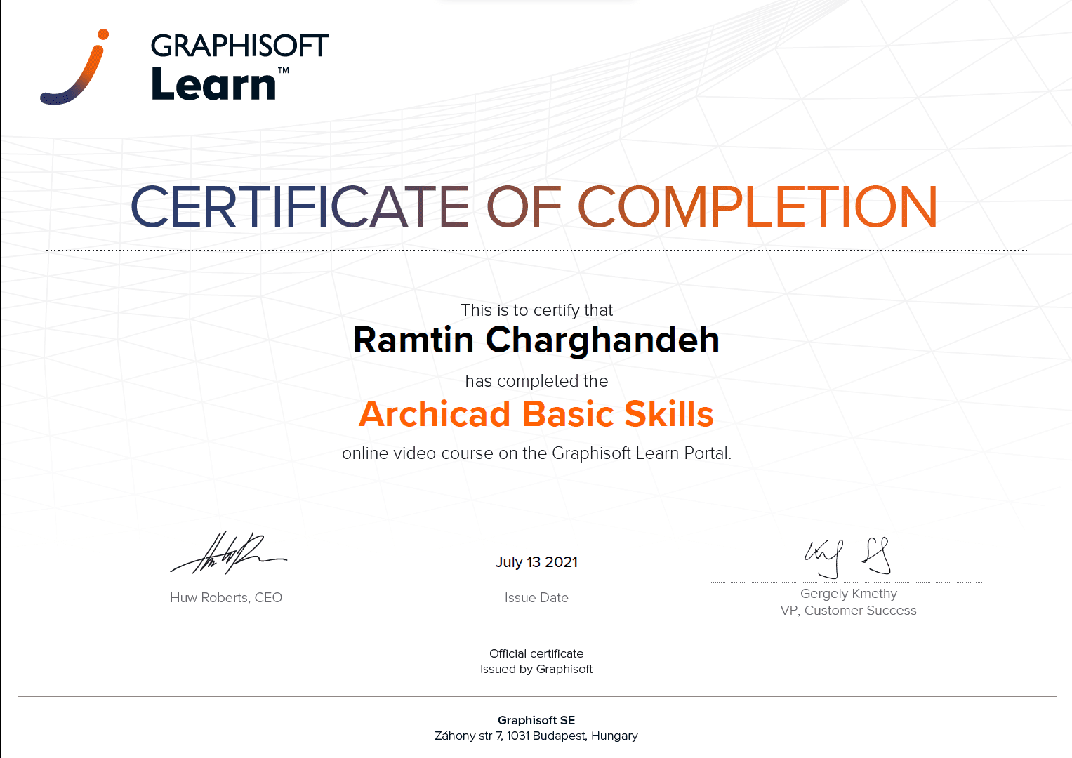 • در صورتی که حداقل نمره قبولی 60% را کسب نموده اید لطفاً برای دریافت گواهینامه اولیه خود (Archicad Basic) به این لینک (یا این شماره در تلگرام: 00989154427780) مراجعه نمایید و درخواست دهید